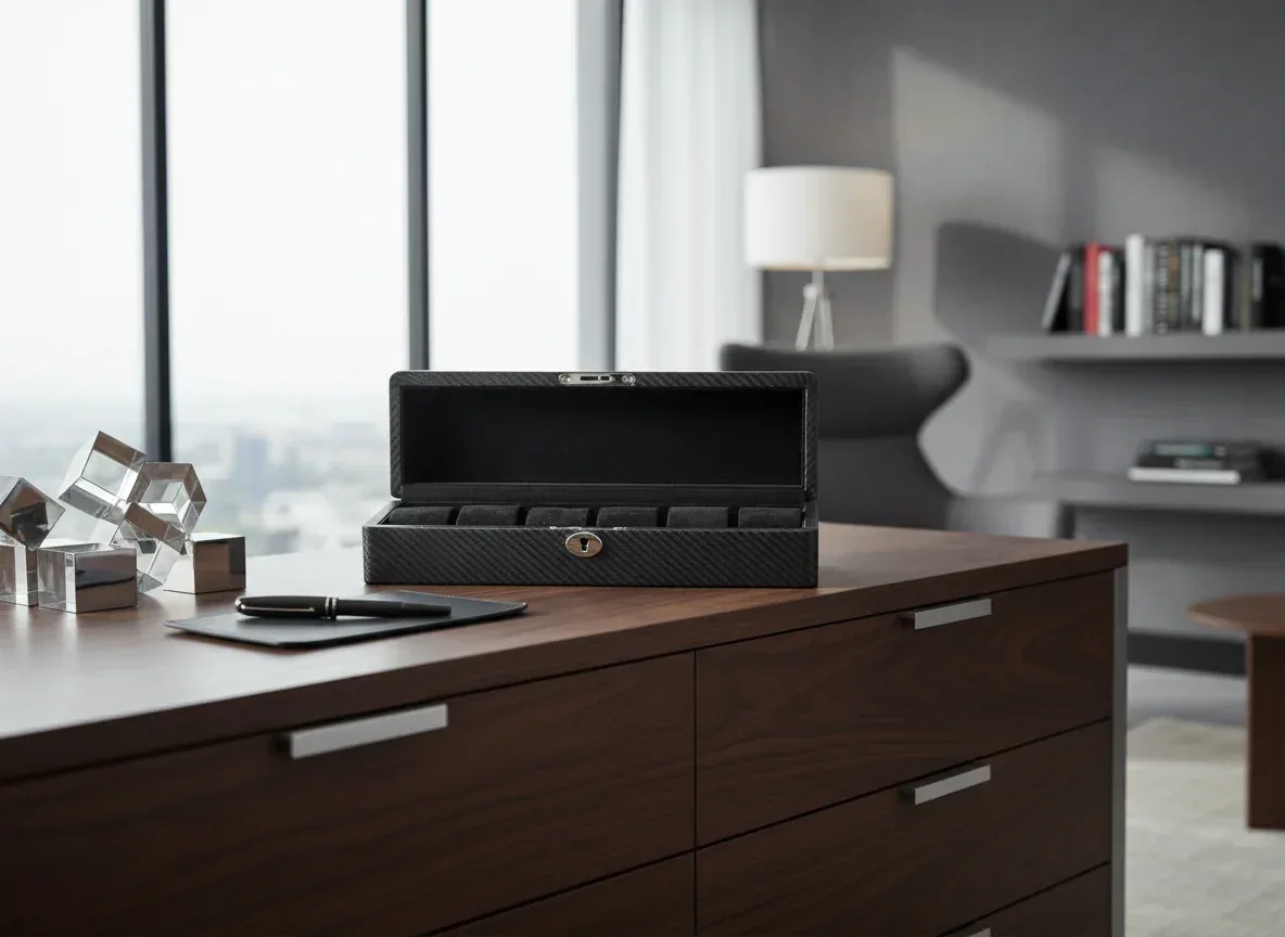 A perfect balance of luxury craftsmanship and thoughtful design, this watch box keeps your collection organized, protected, and elegantly displayed.