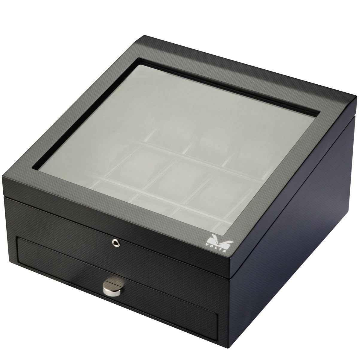 Volta Carbon Fiber Watch Case with 15 Compartments and Extra Storage